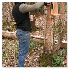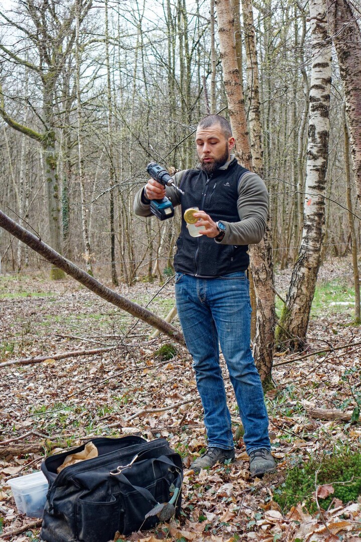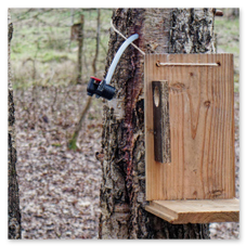 Après nous avoir dévoilé les mystères de la « Gelée royale » lors d’une animation avec les apiculteurs de la ferme en décembre dernier, il propose de nous faire découvrir la « Sève de bouleau » qu’il récolte sur place.
